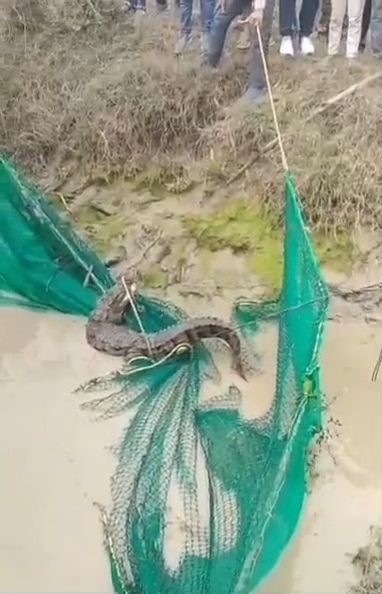 करीब एक घंटे तक मगरमच्छ नहर में इधर-उधर घूमता रहा। स्थानीय ग्रामीणों के मुताबिक नहर में पहली बार इस तरह का जंगली जीव दिखाई दिया है। सूचना दिए जाने पर कुछ ग्रामीण रस्सियों और जाल की मदद से मगरमच्छ को पकड़ने में जुट गए। काफी मशक्कत के बाद मगरमच्छ को जाल में फंसाकर सुरक्षित बाहर निकाला गया। पकड़ने के दौरान मगरमच्छ ने कई बार जाल तोड़ने की कोशिश भी की लेकिन ग्रामीणों की टीम ने शांत तरीके से उसे काबू में कर लिया।