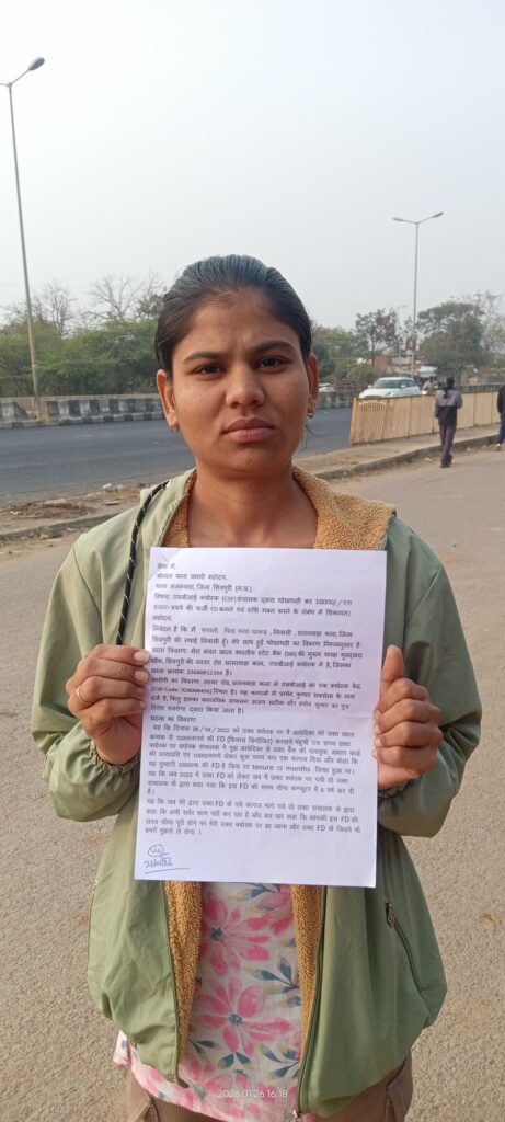 मुन्नी कुशवाह पत्नी जगदीश कुशवाह₹53,000 की फर्जी FD ठगी का शिकार।