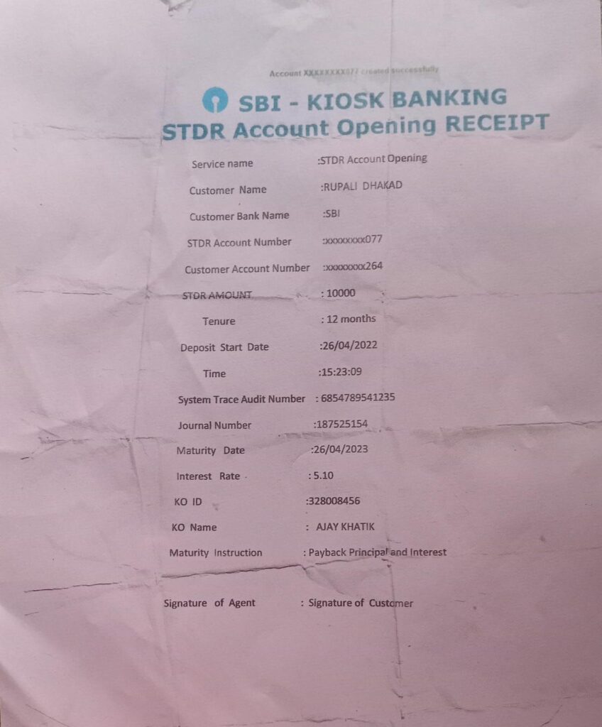 पीड़िता रूपाली पुत्री भरत धाकड़ ने बताया कि उन्होंने 26 अप्रैल 2022 को सतनवाड़ा स्थित SBI कियोस्क (CSP कोड: 328008456) पर ₹10,000 जमा किए थे। संचालक अजय खटीक ने उन्हें आधिकारिक बैंक रसीद के बजाय एक साधारण कागज पर मोहर लगाकर थमा दिया।
